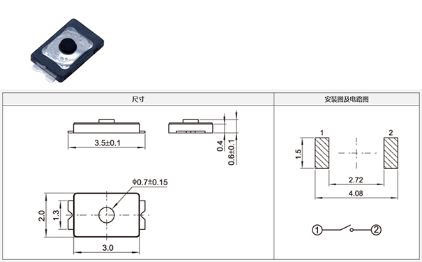此款開關多用于耳機的音量+和-的按鍵,手感偏軟,有帶定位柱和不帶定位柱多款式選擇。