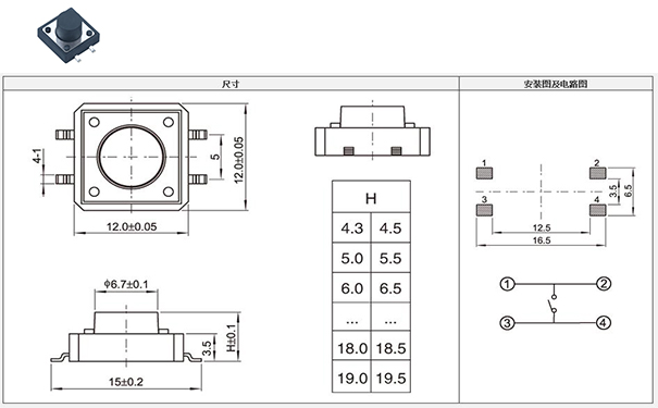 12x12小型輕觸開關電路圖
