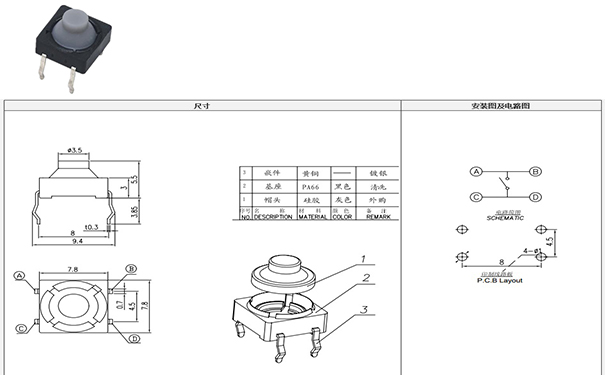 4.5x4.5輕觸開關電路圖